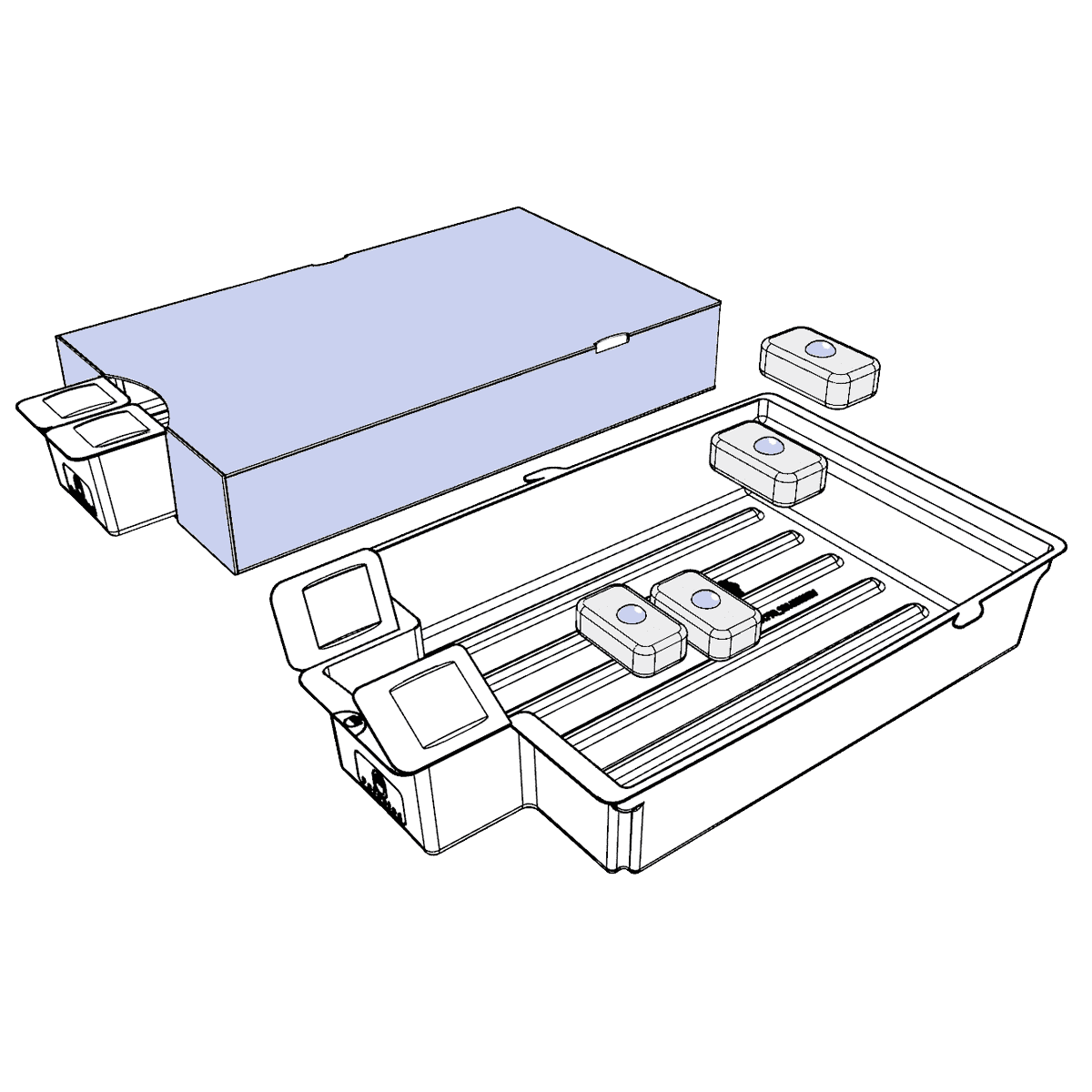 Locked4Kids child resistant cartons have been developed for high speed automated production on standard pharmaceutical packaging equipment supplied by companies such as Romaco, Uhlmann, Pentapack, etc. Blister strips are loaded top down into a tray, which is then inserted into the child resistant carton. With Locked4Kids cartons, you can achieve the same packaging process speeds as with regular (non CR) cartons.